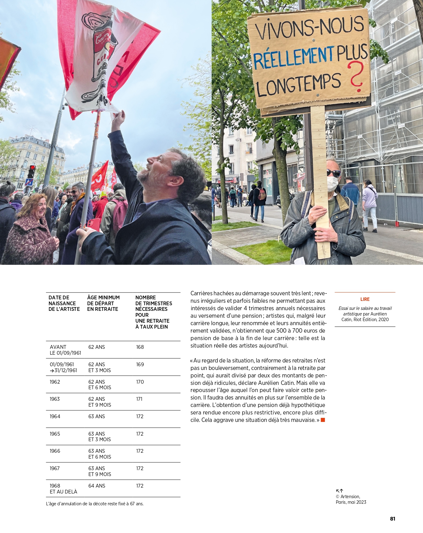 Artension. En résulte un très bon papier sur l'impact de la réforme des retraites sur les artistes.